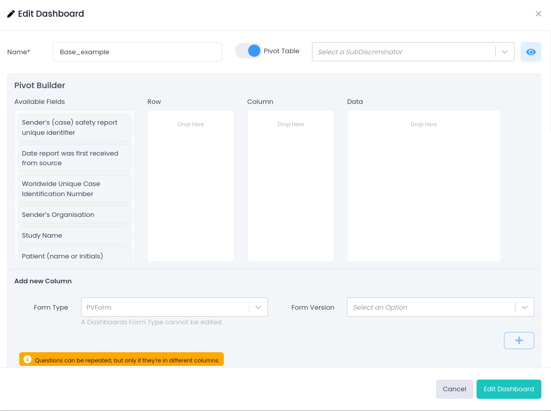 Select a pre-existing dashboard or create a new one for the purpose of pivot tables: